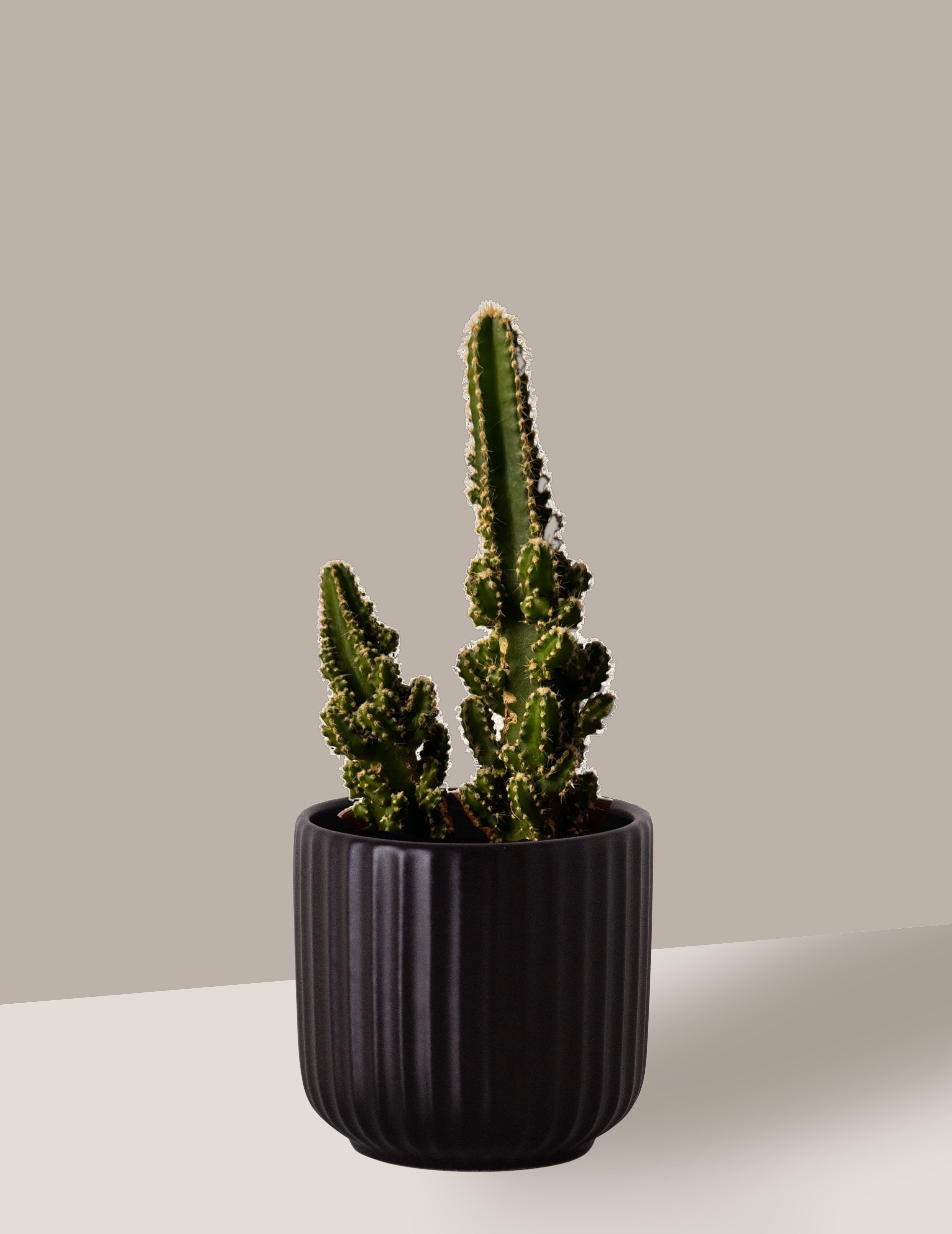Caule: O cacto apresenta um caule ereto, cilíndrico, que pode atingir alturas de até 4 metros. O caule é segmentado em colunas, geralmente com 4 a 7 costelas bem definidas.
