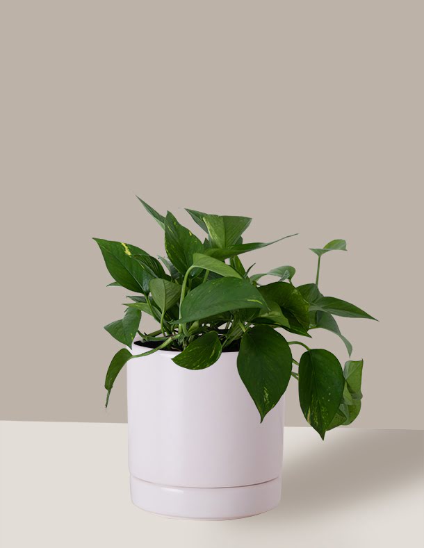 O Conjunto de vaso da Jiboia pequena tem aproximadamente 25 cm., e é indicado para quem quer uma planta mais minimalista na decoração.